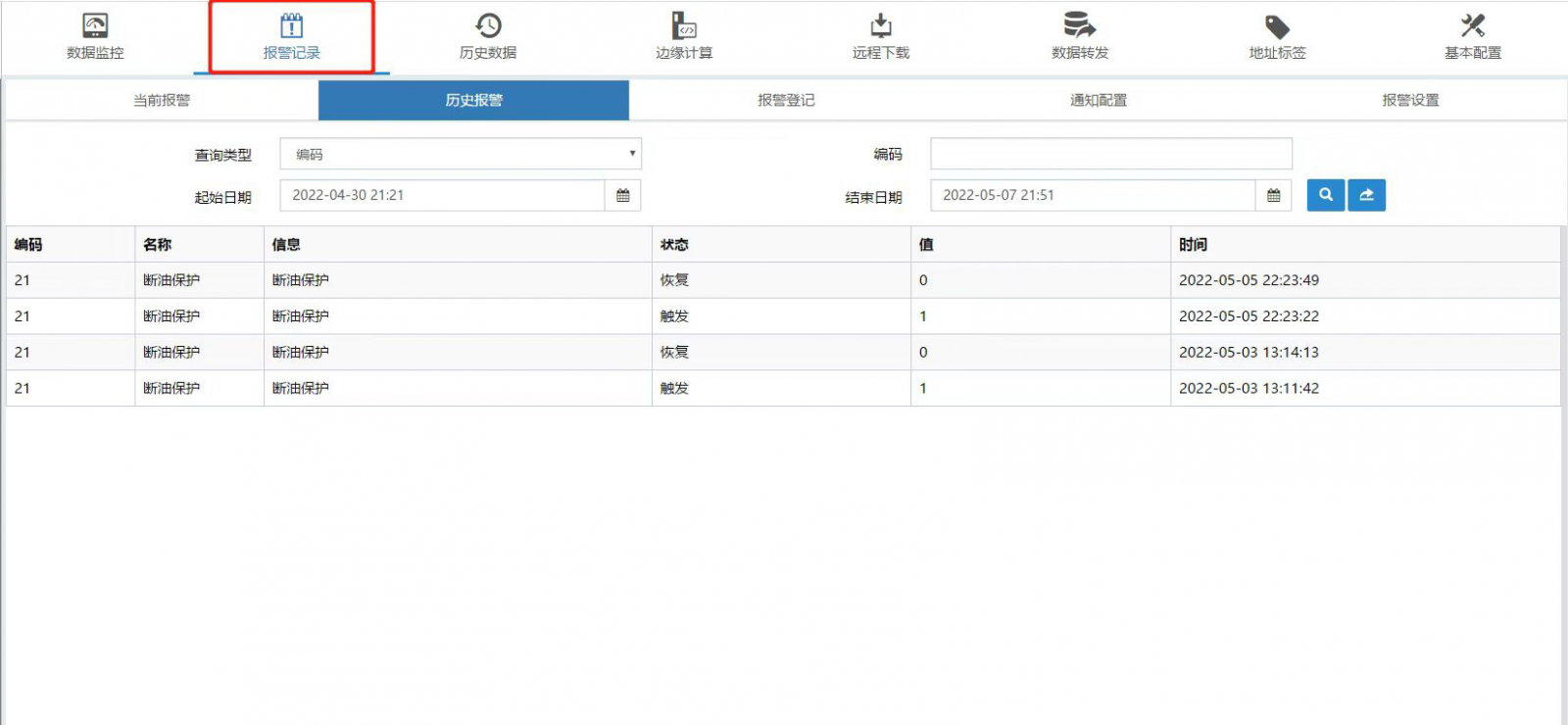 故障信息推送界麵(miàn)