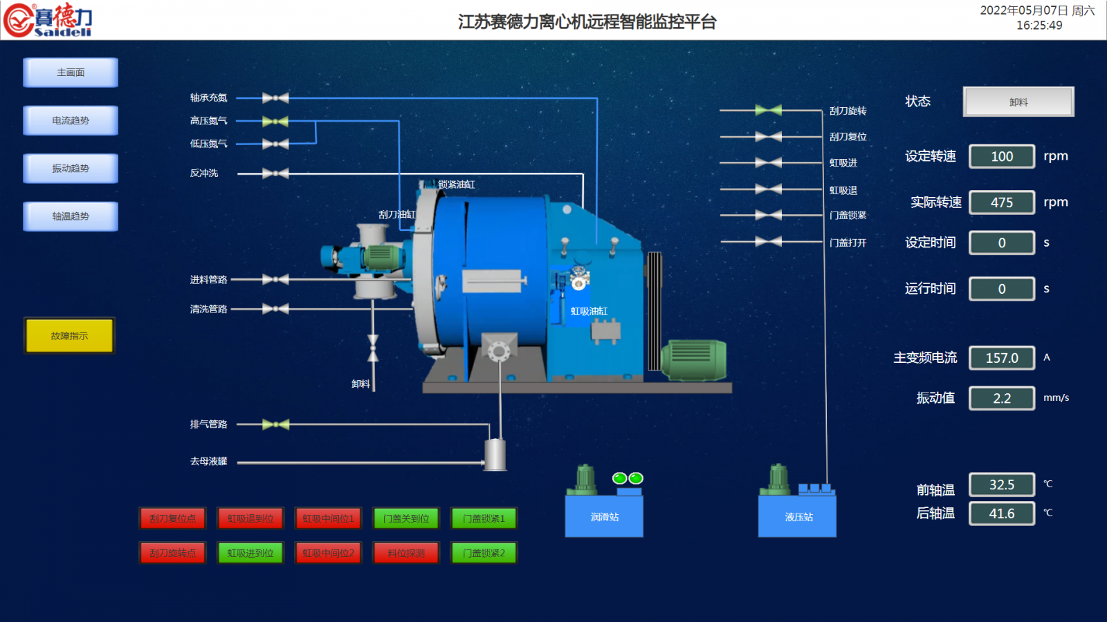 在對江蘇XX公司生產車間的GKH1800機型的離心機數據監(jiān)測(cè)過程中發現,部分離心(xīn)機的電流、振動等數據異常(cháng)。經分析(xī)診斷出該(gāi)設備(bèi)的(de)刮刀片磨損導致運行時相關參數異(yì)常(cháng),賽德(dé)力售後服務人員第一時(shí)間與客戶(hù)溝通,及(jí)時前往客(kè)戶現場進行更換,保障了設備的穩(wěn)定可靠運行,避(bì)免了因機械部件磨損帶來的設備持續性損傷,延長設備使用壽命。
