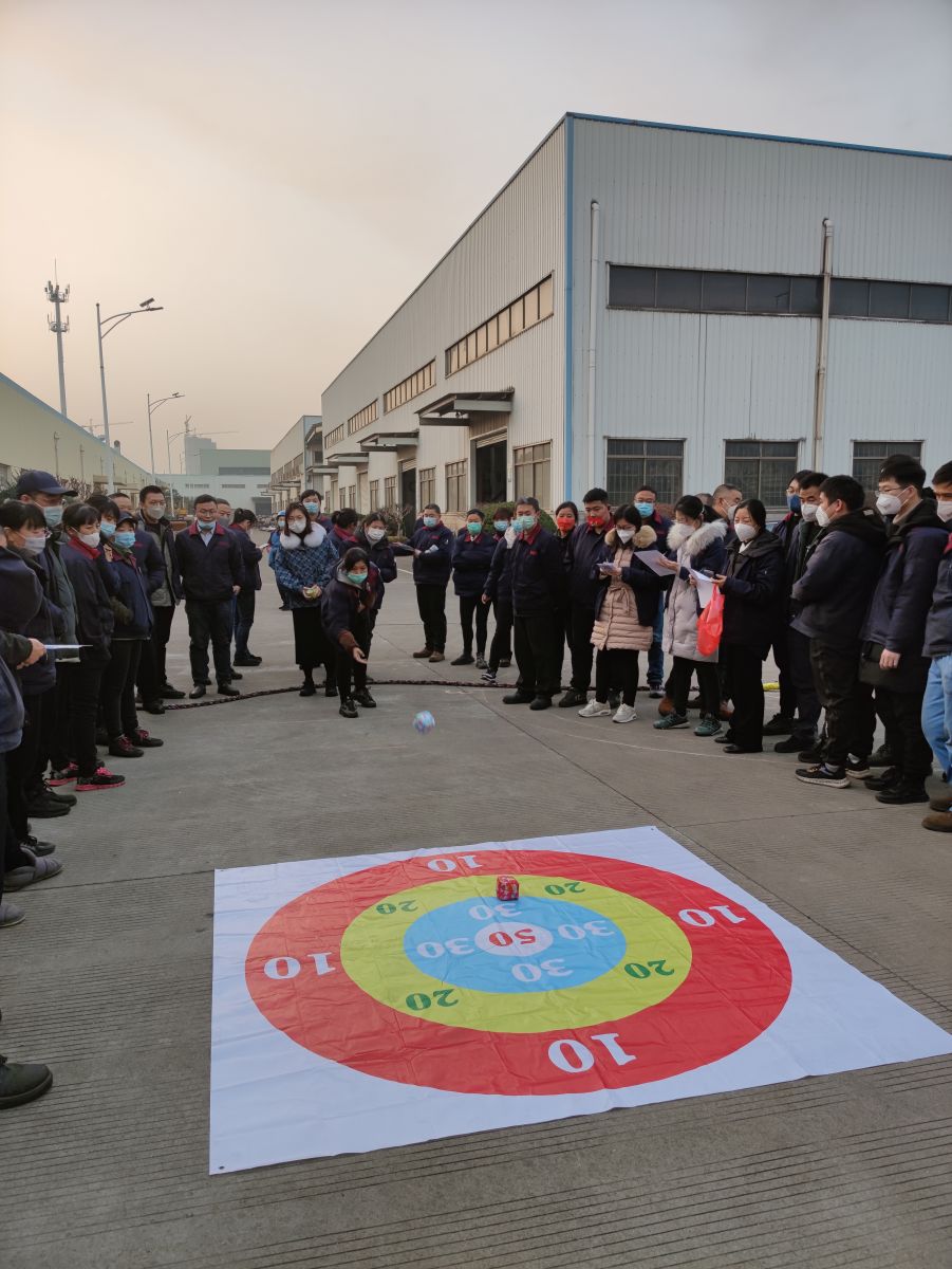 沙包投擲是一項趣(qù)味活動,鬆軟的沙包,平(píng)鋪於遠處(chù)地麵的數(shù)字環盤,看似簡單,實則不容(róng)易(yì)掌控力度,在比賽正式開始前(qián)已有(yǒu)數位員工圍著環盤練(liàn)習投擲(zhì)。看:一個小(xiǎo)小的沙包,從員工手中飛(fēi)出,越過10分(fèn)環滾過50分環最後停在了(le)10分環;連環都沒有靠近或滾(gǔn)過所有(yǒu)的環盤直(zhí)接停在外圍;高手在民間,一個(gè)50分環,2個50分環…..大家是各顯身手!本輪遊戲每組(zǔ)9人輪流投擲,團隊分數(shù)最高的隊伍為冠軍,其次是亞軍、季軍,所有參與活動的員工都有機會獲得精美獎品一份。