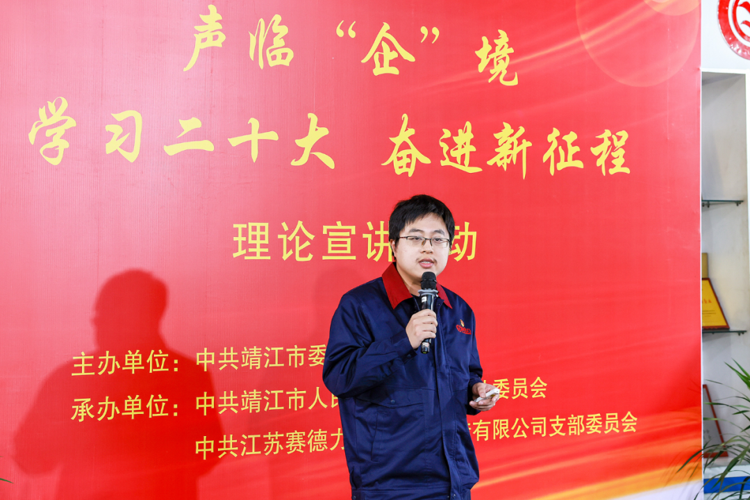 11月11日,“聲臨‘企’境——學習二十大 奮進新征程(chéng)”理論宣講活動走進江蘇草莓视频在线製藥機械(xiè)製造有限公司,企業總經理顧逸以“企業紅(hóng)領”宣講團成員的身份,向公(gōng)司部分黨員、職工代表作(zuò)黨的二十大主題宣講(jiǎng)。活動中,企業職(zhí)工還朗讀了黨的二十大報告原文並開展(zhǎn)知識(shí)問答,市委宣(xuān)傳部、城南辦事處共同為“草莓视频在线企業家宣講工作室”揭牌。