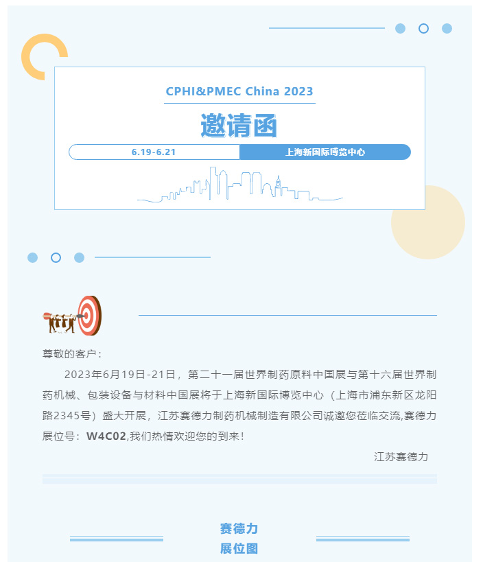 江蘇賽德(dé)力邀您共(gòng)聚上海世界製藥原料中國展!