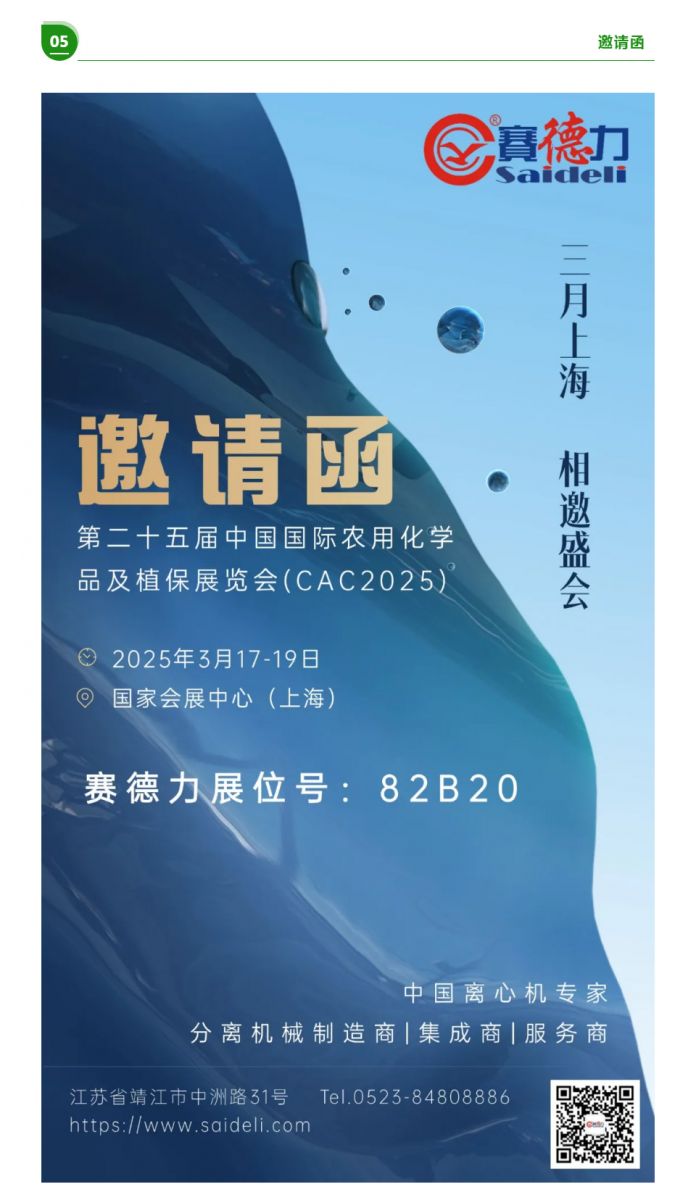 邀請函 | 第(dì)二十五屆中國國際農用化學品及植保展覽(lǎn)會(huì)(CAC2025)