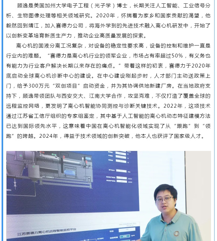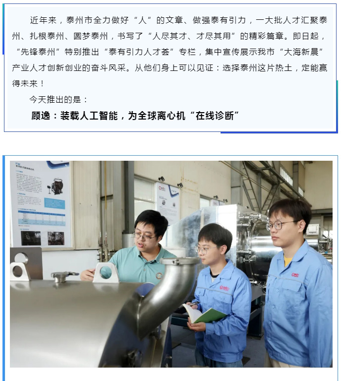 泰有引力(lì)人才薈⑫丨顧逸(yì):裝(zhuāng)載人工智能,為全球離(lí)心機“在線診(zhěn)斷”