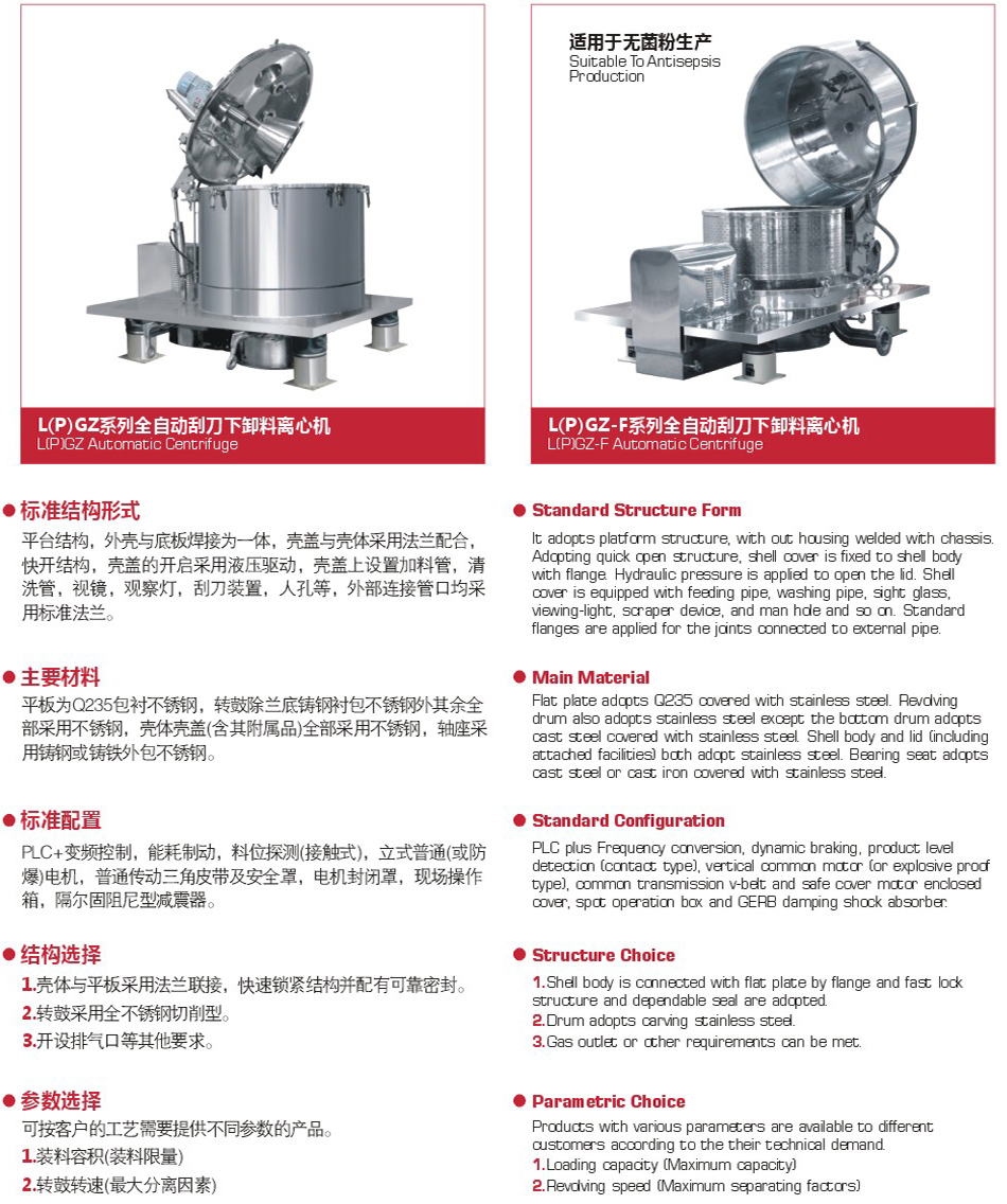 L(P)GZ-F Series Automatic Scraper Bottom-Discharge Centrifuge