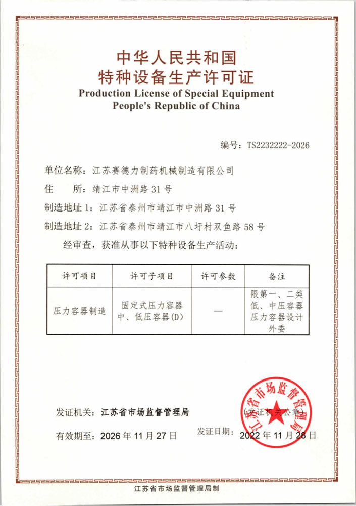 Copyright(C)2021, Jiangsu Saideli Pharmaceutical Machinery Co., Ltd. All Rights Reserved. Supported by ChinaChemNet ChemNet Toocle Copyright Notice 備案序號:蘇ICP備05035753號